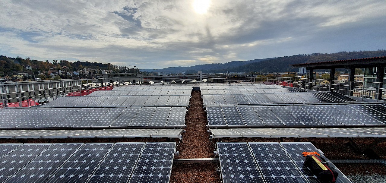 | Besonderes | ZEV über Gewerbebau. Teilrecyclierte Anlage: Wiederverwendung von Modulen, die auf dem Siemensgebäude in Zürich standen. Das gesamte Gebäude besteht fast ausschliesslich aus Recyclingmaterialien. |